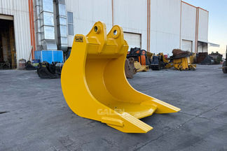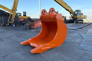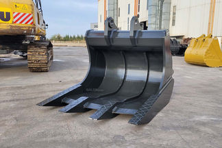 The elongated profile of this bucket is specifically designed for handling and loading large rocks and blocks.